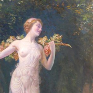 Lucien FOLLER 1869-1938, Bacchante, femme nue, tableau, 1915, Art Nouveau